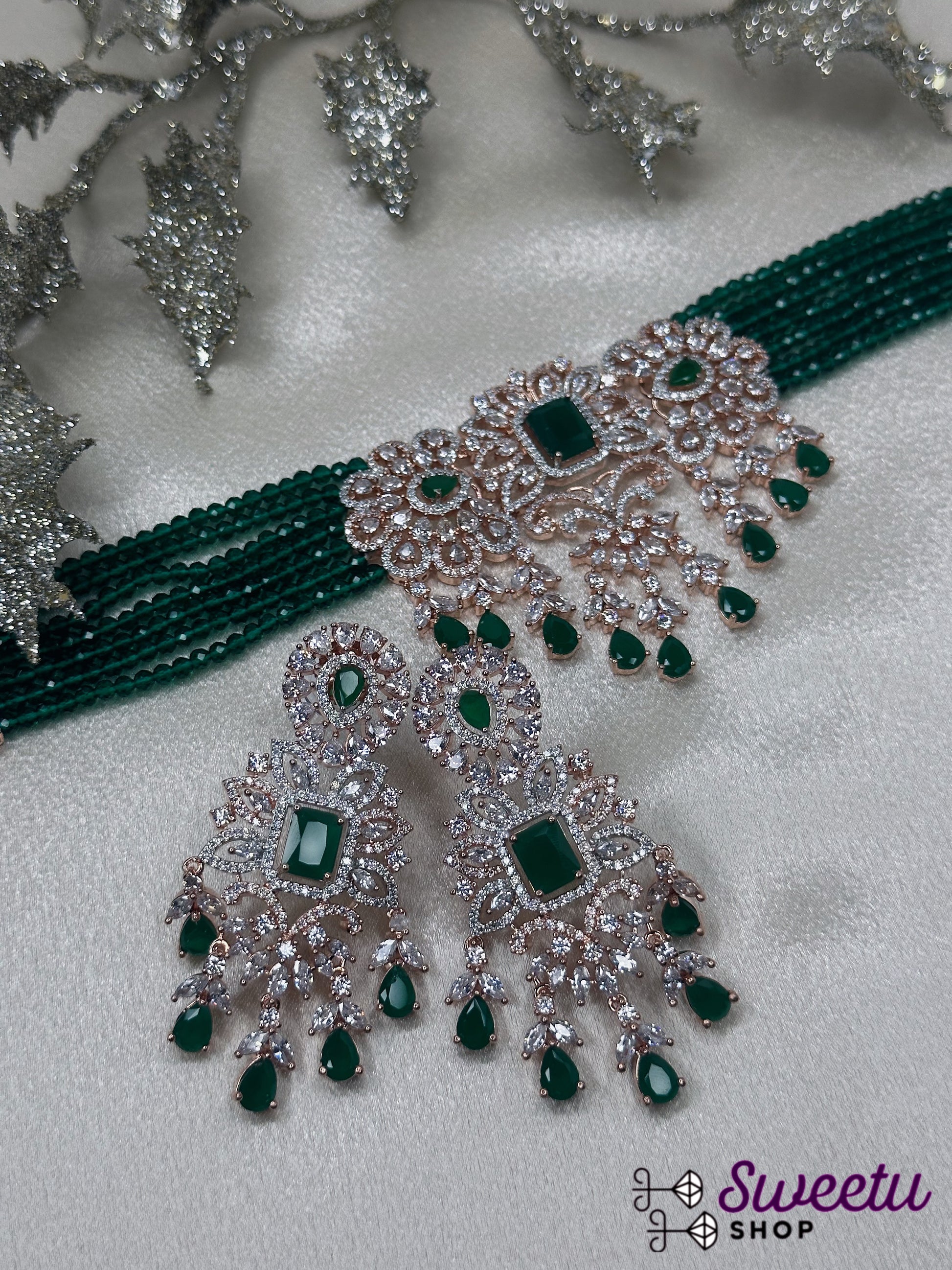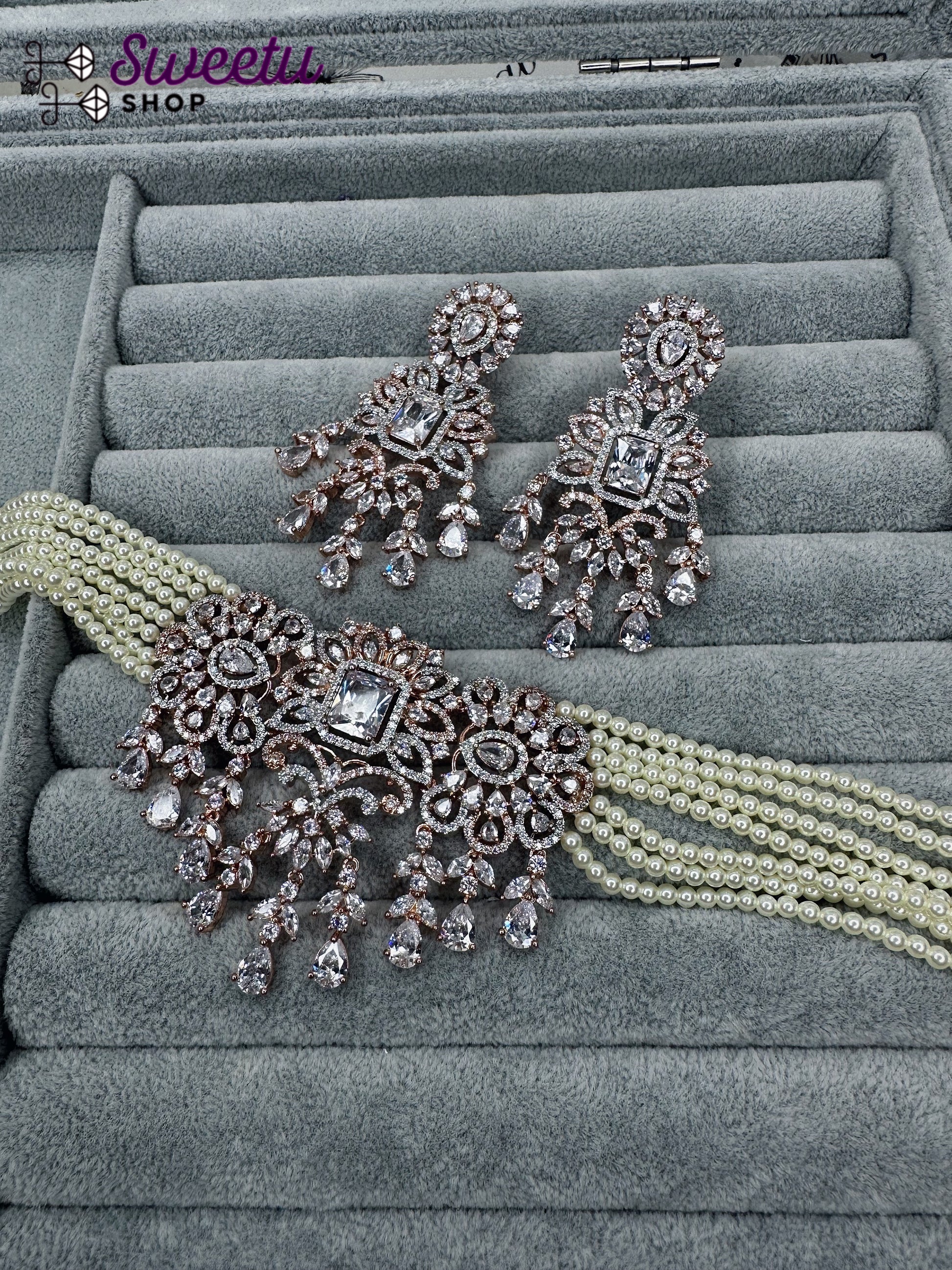 AD/CZ earring and choker